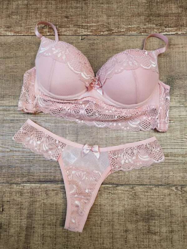 A calcinha com modelagem fio dental também é de renda e tulle. Esta calcinha fica super delicada oferecendo sensualidade para aqueles momentos especiais.