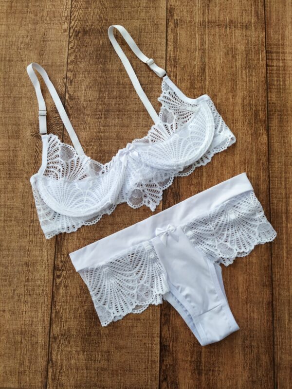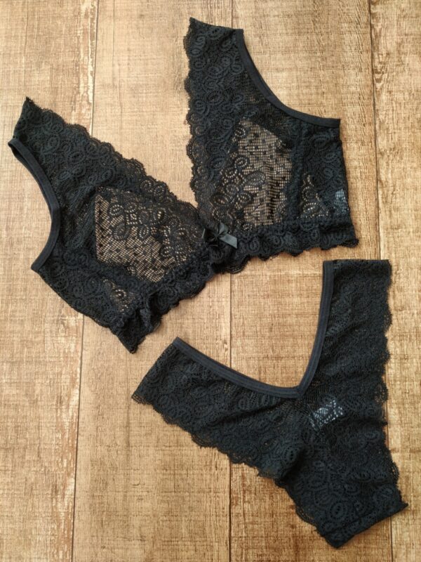 Este kit contém 10 conjuntos de lingerie sem bojo, enviados em modelos e cores sortidas.
