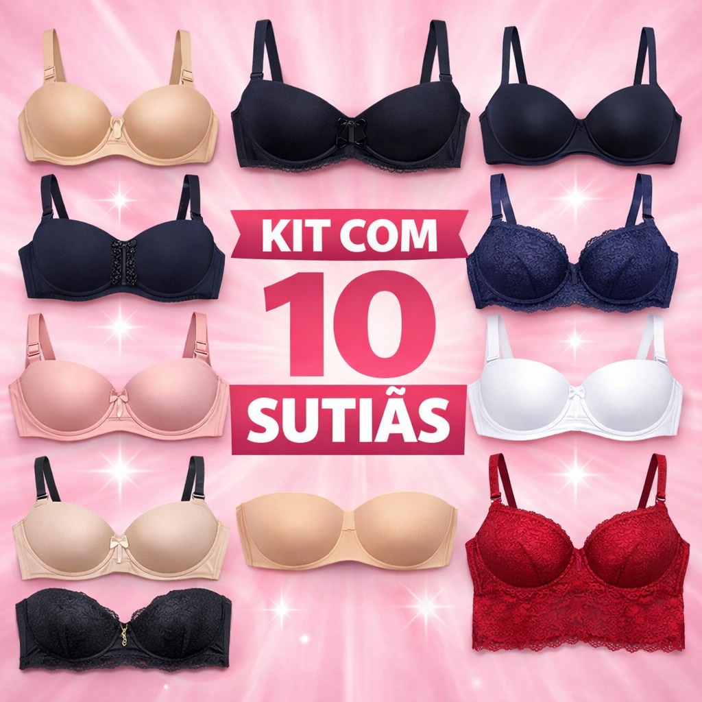 🛍️ Kit com 10 Sutiãs de Lingerie Variados – Queima de Estoque