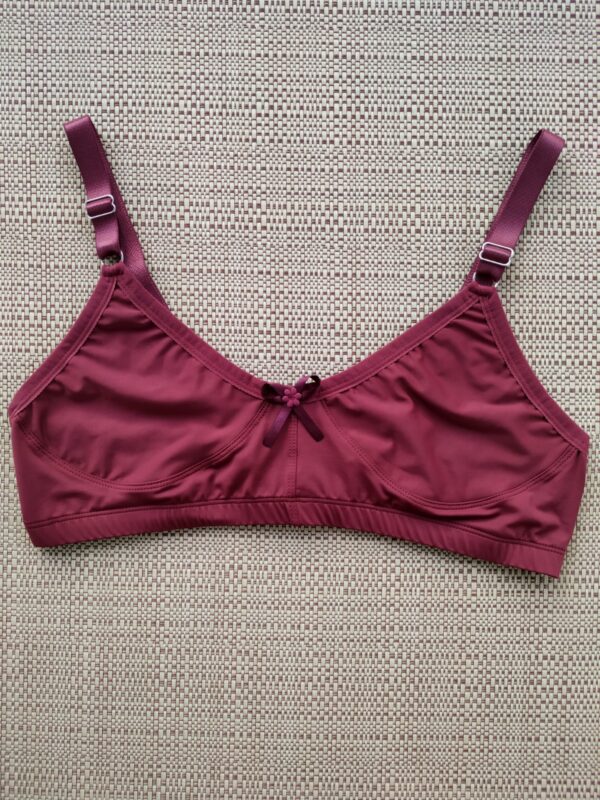 Sutiã Sem Bojo Plus – Nicolle é confeccionado em microfibra poliamida. Modelagem voltada para plus size com alças mais largas com 18mm. Esse sutiã é uma belíssima peça sem abrir mão do conforto. Por ser um sutiã sem bojo, ao invés do bojo pré-moldado há a microfibra dobrada, isso ajuda a dar mais firmeza aos seios. Afim de oferecer mais conforme e firmeza a peça os acabamentos na parte de cima da cintura e bojo são mais largos que o padrão. Para finalizar possui um belo lacinho de cetim.